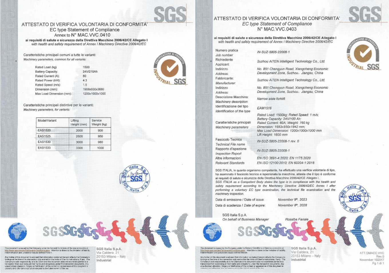 3. CE 标志(欧盟): 确保符合机械指令,强调对繁忙仓库等动态环境的风险评估,在这些环境中,叉车与行人和手动设备相互作用。为满足欧洲市场的法规要求,九游jiuyou产品经过严格审核,为包括 MP10AM1516AE15、AS15 和其他产品在内的 AGV 产品获得了欧盟 CE 证书。